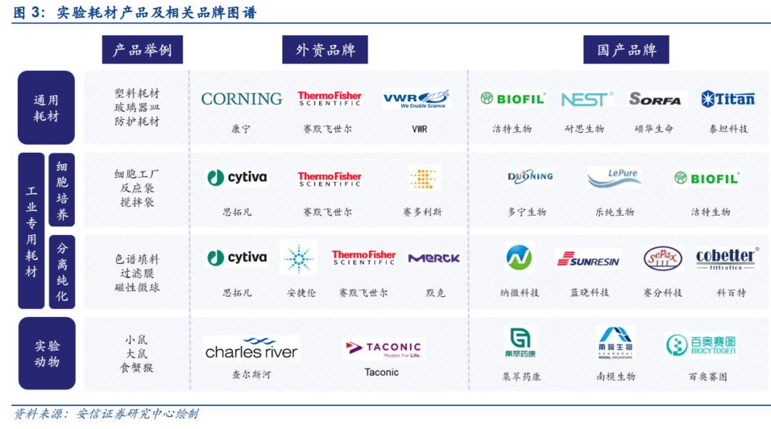 附錄來(lái)源:安信證券《生命科學(xué)產(chǎn)業(yè)鏈上游系列研究之科研產(chǎn)品圖譜篇:生物研發(fā)包羅萬(wàn)象,國(guó)產(chǎn)化進(jìn)程加速》。