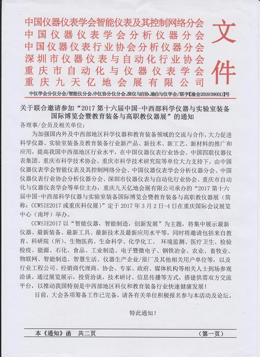 器與實驗室裝備國際展覽會暨教育裝備與高職教儀器展”的邀請函