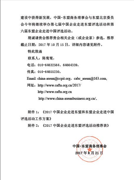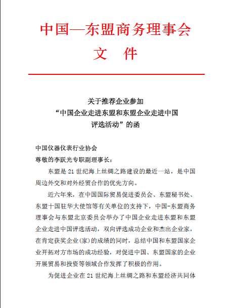 關于推薦企業參加 “中國企業走進東盟和東盟企業走進