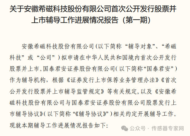 2024年4月28日,希磁科技與國泰君安簽署上市輔導(dǎo)協(xié)議,截止2024年7月9日,完成第一期輔導(dǎo)工作。