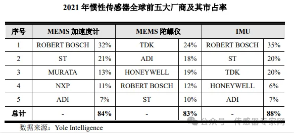 目前,市場上最成功的MEMS加速度計供應(yīng)商是博世、意法半導(dǎo)體、村田制作所、恩智浦和亞德諾等,其中,博世和意法半導(dǎo)體分別以32%和21%市場份額領(lǐng)先。