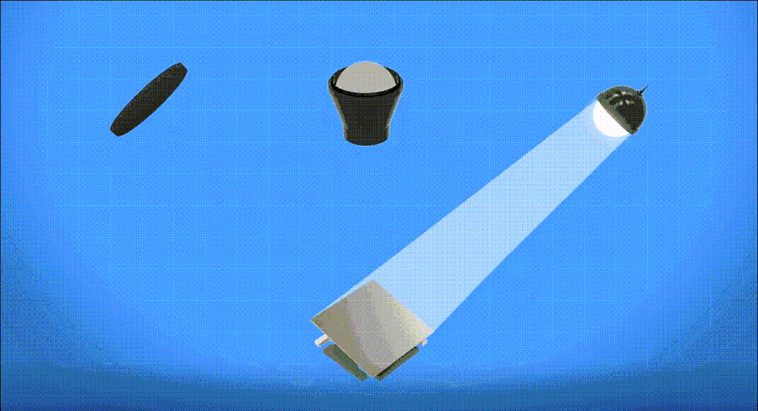在一個DLP芯片里面微鏡數(shù)以百萬計,每一面反射鏡都可以獨立反轉(zhuǎn)運動,正負方向翻轉(zhuǎn),每秒鐘翻轉(zhuǎn)次數(shù)高達數(shù)萬次。下圖是DMD芯片每一個微鏡翻轉(zhuǎn),折射光線的過程,每一片微鏡都可以單獨控制,折射相應(yīng)的光線,從而形成不同的色彩、明暗,每一個微鏡就如同我們電視的每一個像素點。