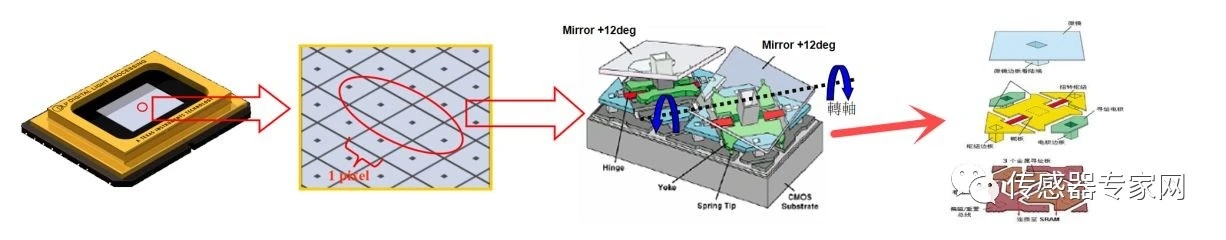 DLP(Digital Light Processing,數(shù)字光處理)芯片的核心器件是DMD(Digital Micromirror Device,數(shù)字微鏡器件),是光學(xué)MEMS的重要類別。
