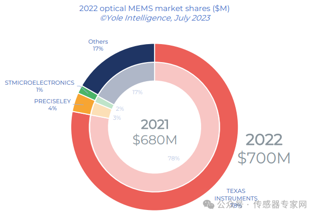 ▲2022全球光學(xué)MEMS市場份額,來源:Yole