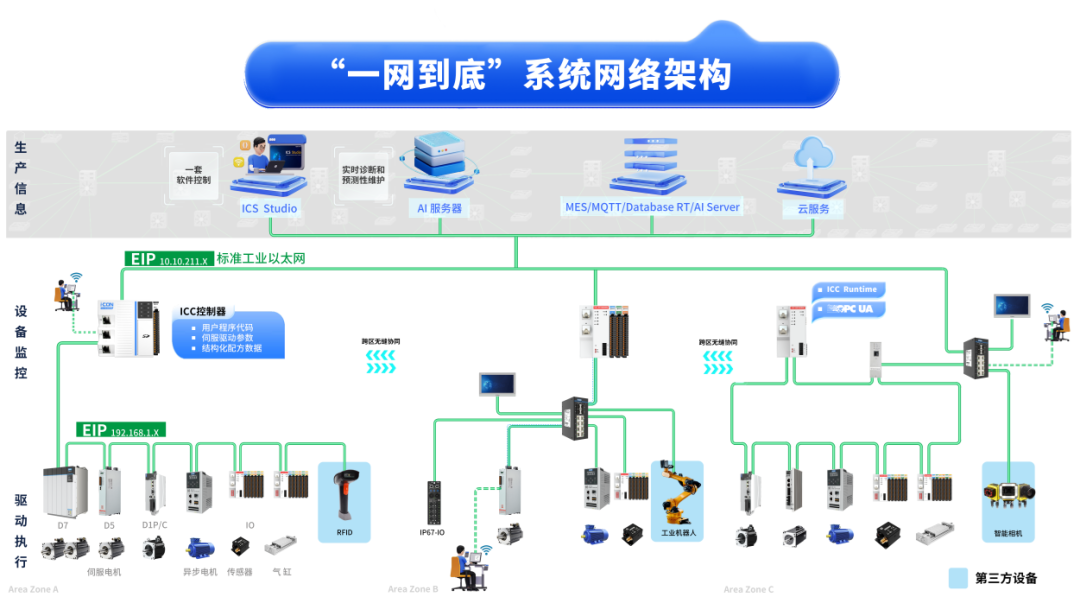 一網到底架構打破數據孤島,深度融合ITOT,為工藝優化、異常回溯、預測性維護以及5G工業互聯提供數據支撐。通過確定性傳輸和低延遲技術,確保關鍵數據實時、準確傳遞,為智能工廠建設奠定堅實基礎。