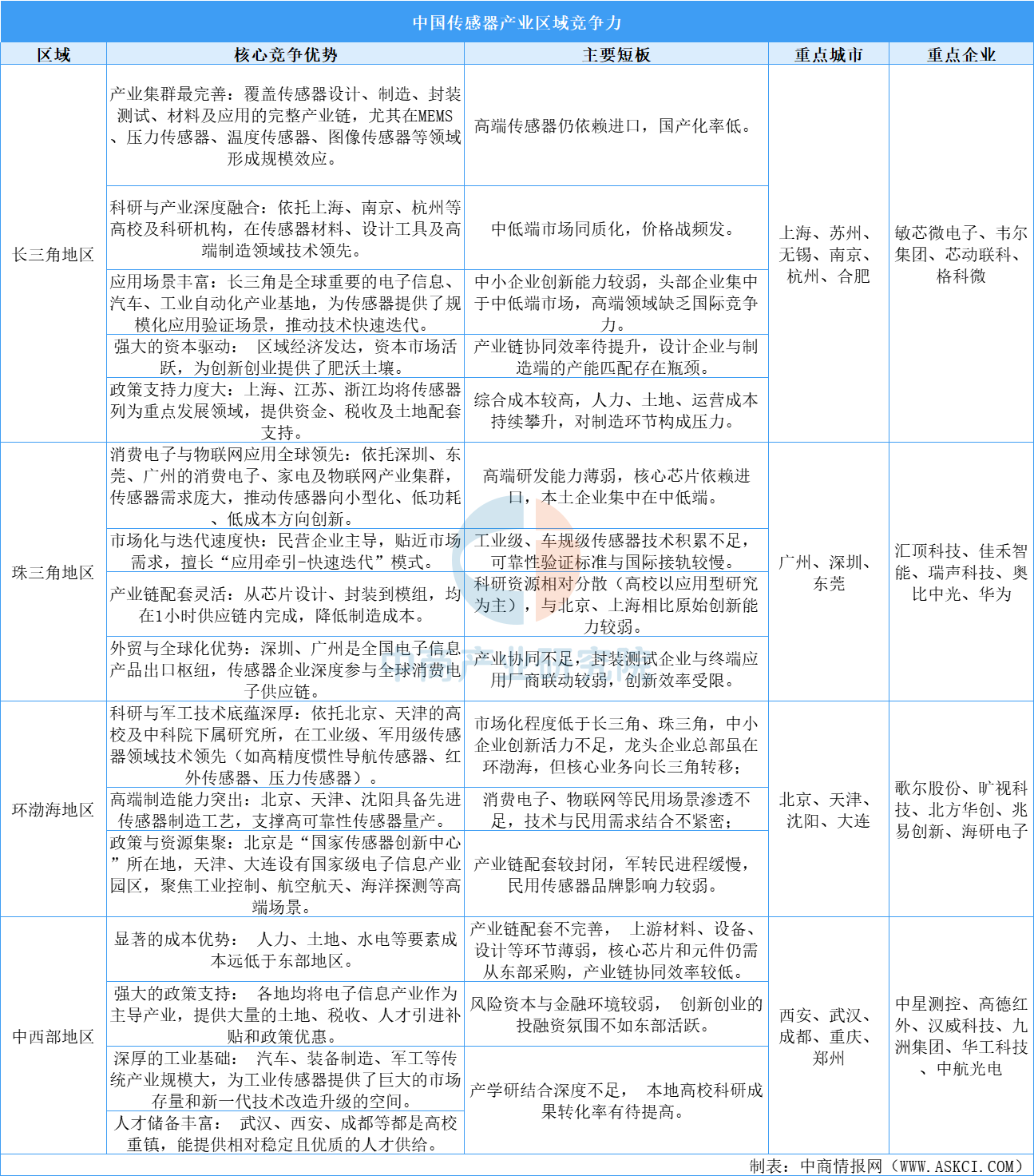 傳感器產(chǎn)業(yè)區(qū)域競爭力分析
