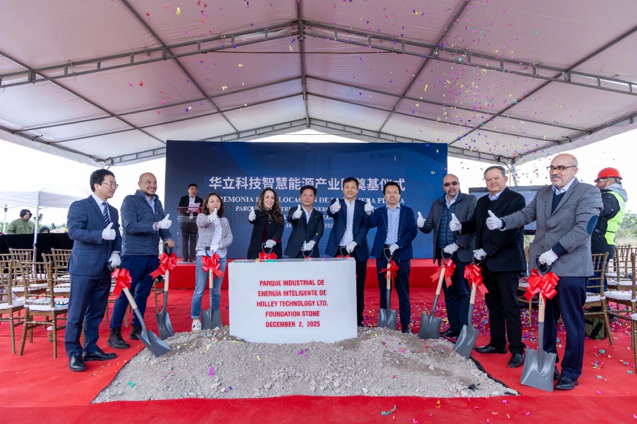 當地時間2025122日,華立科技墨西哥智慧能源產業園奠基儀式在新萊昂州蒙特雷華富山工業園順利舉行。華立科技董事長鐘祥剛出席并致辭,新萊昂州外商投資部主任Regina Sada Elizondo,來自CFE北部大區的代表,華立科技海外事業部總經理黃云鵬、海外事業部市場總監陳建鋒,以及華立海外和承建方代表共同參加此次奠基儀式。