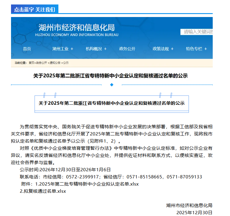 此外,浙江省經濟和信息化廳還公示了2025年第二批專精特新中小企業(yè)擬認定企業(yè)名單,西力科技全資子公司浙江西力智能科技有限公司(簡稱“浙江西力”)憑借在智能配電領域的技術積累與創(chuàng)新能力,成功入選該名單。