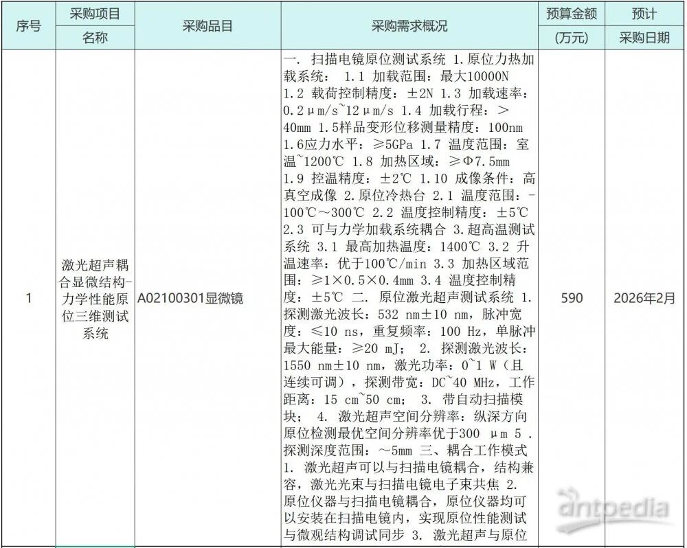 本次采購(gòu)的“激光超聲耦合顯微結(jié)構(gòu)-力學(xué)性能原位三維測(cè)試系統(tǒng)”技術(shù)集成度高、指標(biāo)先進(jìn)。該系統(tǒng)要求能夠與掃描電鏡深度耦合,在微觀尺度下(如掃描電鏡腔內(nèi))實(shí)現(xiàn)對(duì)材料在極端條件(如-100℃至1400℃溫度范圍、高達(dá)5GPa的應(yīng)力水平)下的力學(xué)行為進(jìn)行實(shí)時(shí)、原位觀測(cè),并同步結(jié)合激光超聲技術(shù)進(jìn)行亞表面缺陷與性能的無(wú)損檢測(cè)與三維成像。該系統(tǒng)的引入,將為新材料研發(fā)、微觀力學(xué)機(jī)制研究等前沿領(lǐng)域提供前所未有的“洞察力”。